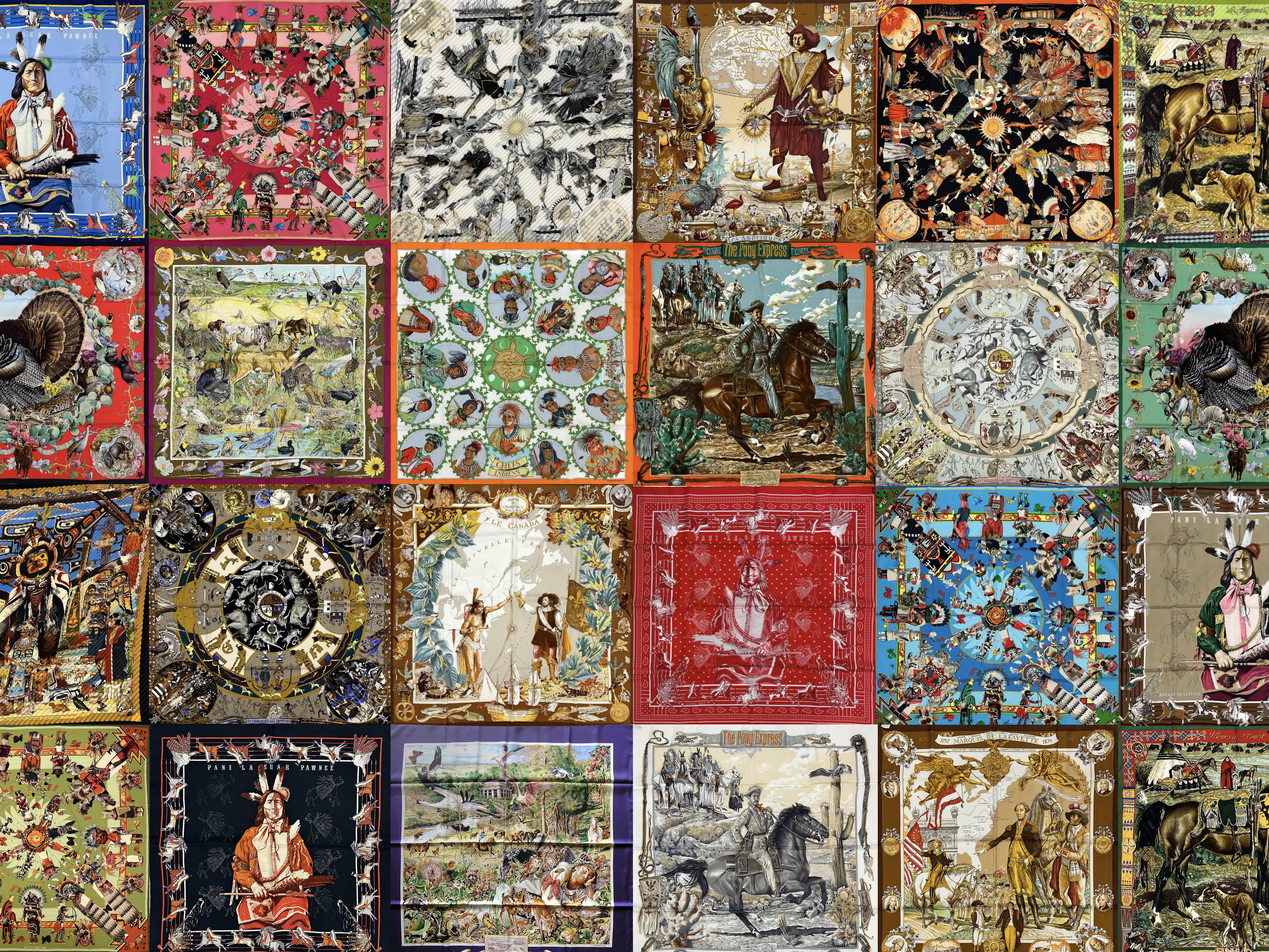 Over 30 Hermès Scarves by Kermit Oliver for auction. Learn More